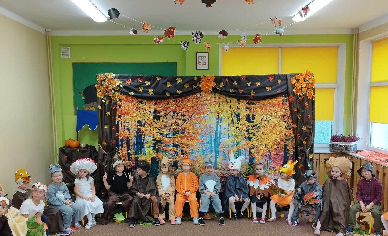W listopadzie, dzieci z grupy XII, przygotowały dla swoich koleżanek i kolegów jesienne przedstawienie o przygodach krasnala, który szykował się do zimy. Przebrane w piękne stroje, opowiedziały jak to leśne zwierzęta oraz grzybiarz pomogły...