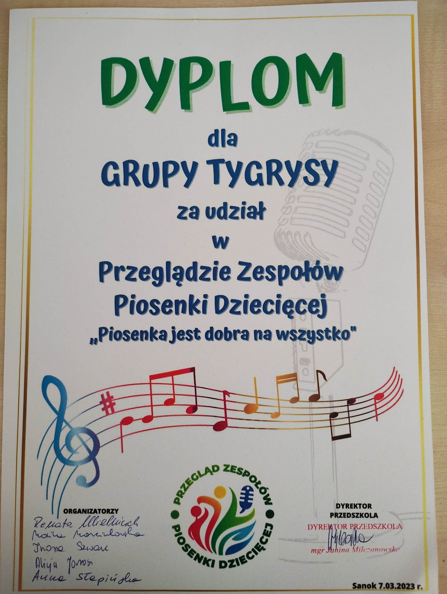 Pierwszy Przegląd Piosenki Dziecięcej pt. „ Piosenka jest dobra na wszystko”, który odbył się 7 marca 2023r. w Sanockim Domu Kultury przyniósł ogrom wrażeń dla naszych przedszkolaków z grupy V.
