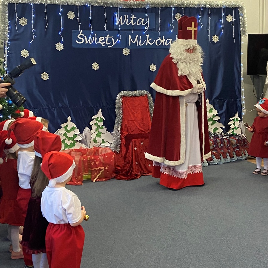 „Mój kochany Mikołaju, cały rok czekałem….” słowami tej piosenki wszystkie dzieci powitały Świętego Mikołaja, który 5 grudnia zawitał do naszego przedszkola.